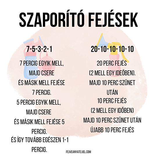 Különböző szaporító fejések ismertek. Mindegyiknek az az alapja, hogy gyakrabban éri inger a mellet, így ösztönözve a testedet arra, hogy több anyatejet termeljen. A szaporító fejéseknek nem azonnal van eredménye! Én azt javaslom, naponta 1 alkalommal, egy hétig iktass be egy szaporító fejést, ha így is szeretnéd növelni az anyatej mennyiségét. Ezzel lehet legjobban lekövetni a növekedési ugrások idején tapasztalható megnövekedett étvágyat a babáknál.